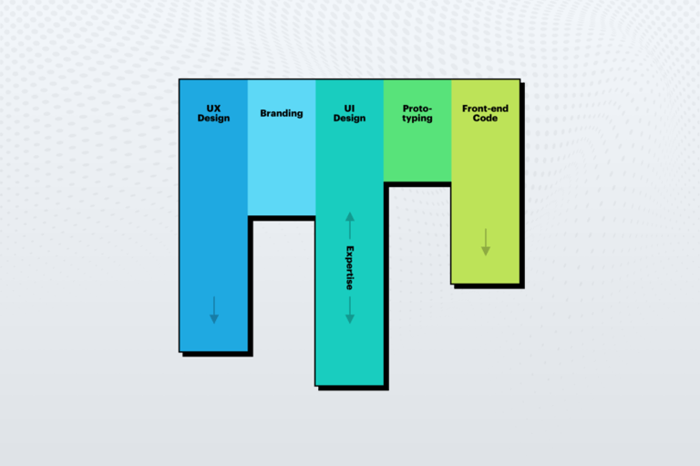“M-shaped” là cấp độ hiếm hơn, thường thấy ở những người có kinh nghiệm lâu năm. Họ có nhiều trụ sâu. Ví dụ: giỏi UI, motion, 3D, illustration — và có cái nhìn chiến lược tổng thể.